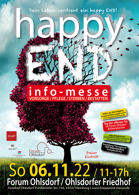 Die happy END Messe in Hamburg bietet Privatbesuchern und Fachpersonal zum sechsten Mal mit zahlreichen Ausstellern wieder ein umfangreiches Informationsangebot zu den Themen Angebote und Dienstleistungen im Leben und Pflege im Alter, altersgerechte Wohnungen, Altenheime, Pflegeheime, Alten-WGs, Vorsorge: Versicherungen, Testament, Sterben zu Zuhause, Hospiz, Sterbebegleitung, Trauer sowie traditionelle und alternative Bestattung.